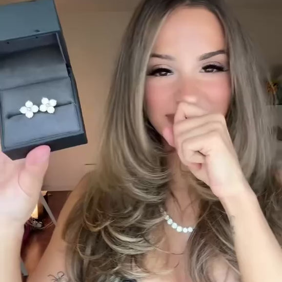 Silberohrringe in Form eines Kleeblatts mit weißen Steinen. Ein elegantes und glücksbringendes Design, das Ihrer Garderobe einen hellen Akzent verleiht. Perfekt für sowohl alltägliche als auch festliche Anlässe. In echter 925er Sterlingsilber